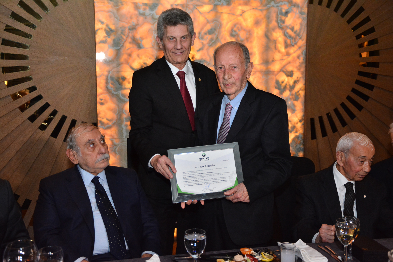 BUSİAD Kurucularından Hüsamettin Örüç, Onur Üyeliği belgesini hayatta olmayan üyeler adına da kabul ettiğini dile getirdi.