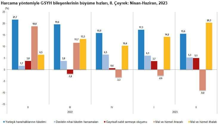 Hanehalkı nihai tüketim harcamaları 2023 yılının ikinci çeyreğinde YÜZDE 15,6 arttı
