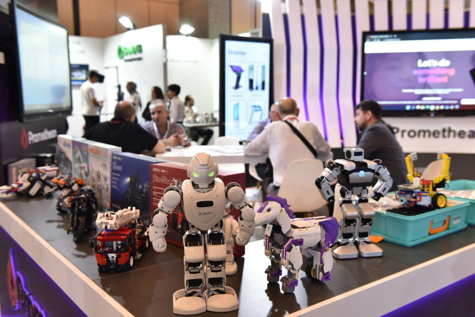 Fuarda; tebeşirli klasik kara tahtaya yazılanı dijital ekrana aktaran yeni nesil akıllı tahtadan, öğretmenlerin ihtiyaç duydukları eğitim materyallerini sınıfta oluşturabilecekleri 3D yazıcı teknolojilerine, eğitimi pekiştiren robotik setlerden yeni nesil dijital sınıflara kadar pek çok teknoloji bir arada sergileniyor.