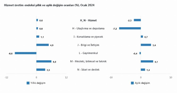 Bu arada hizmet üretim endeksi (2021=100) 2024 yılı Ocak ayında bir önceki aya göre yüzde 2,3 azaldı.