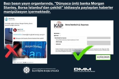 Bazı basın yayın organlarında, “Dünyaca ünlü banka Morgan Stanley, Borsa İstanbul'dan çekildi” iddiasıyla paylaşılan haberlerin manipülasyon içerdiği kaydedildi.