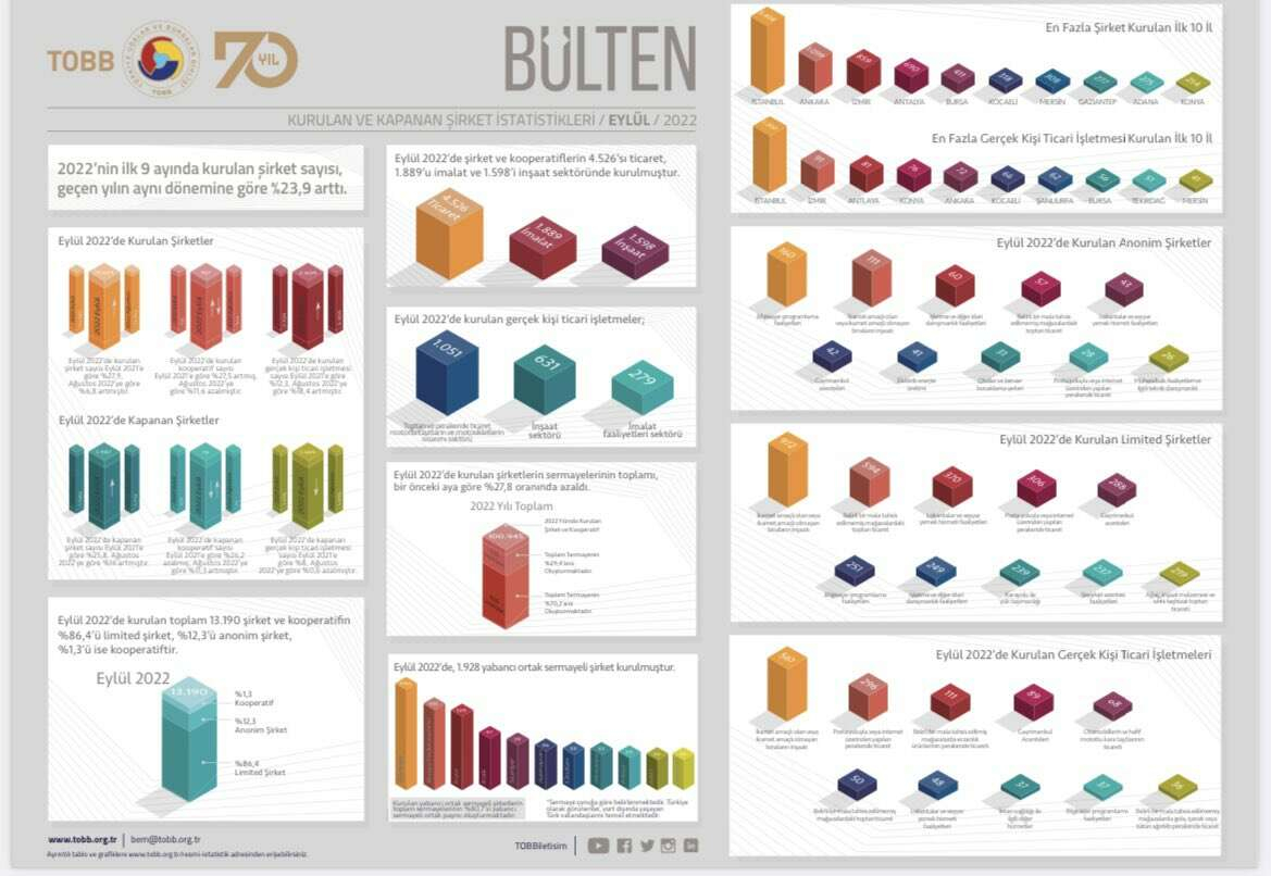 ANKARA (İGFA) - Türkiye Odalar ve Borsalar Birliği (TOBB), 2022 yılı Eylül ayına ilişkin kurulan-kapanan şirket istatistiklerini açıkladı.