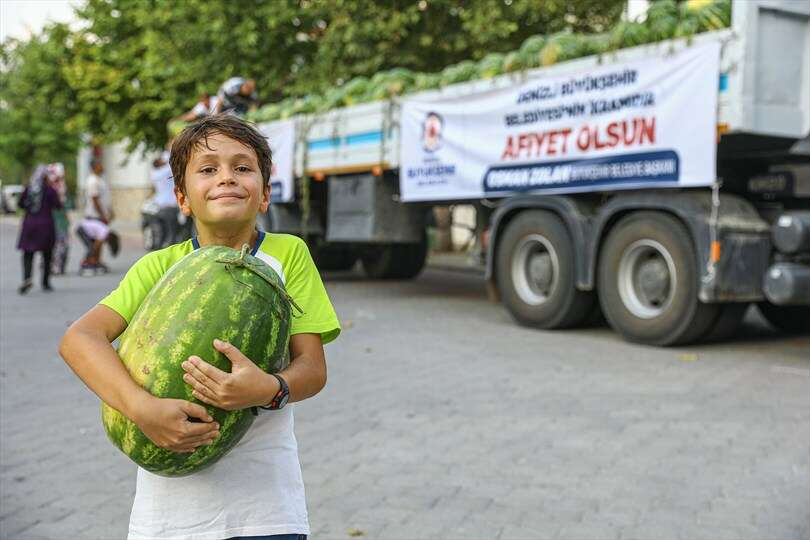 Denizli Büyükşehir Belediyesi, fazla üretimden dolayı Acıpayamlı çiftçilerin elindeki karpuzları satın alarak vatandaşların sofrasına ücretsiz olarak ulaştırıyor. Verdikleri destekle hem üreticilerin hem de vatandaşların kazandığını belirten Başkan Osman Zolan, ürünlerin tarlada kalmasını önleyerek ülke ekonomisine de katkı sağladıklarını söyledi.