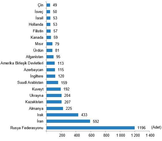 Yabancı ülke uyruklarına göre konut satışlarında Eylül ayında Rusya vatandaşları Türkiye'den bin 196 konut aldı. Onu sırasıyla 592 konut ile İran, 433 konut ile Irak vatandaşları izledi.