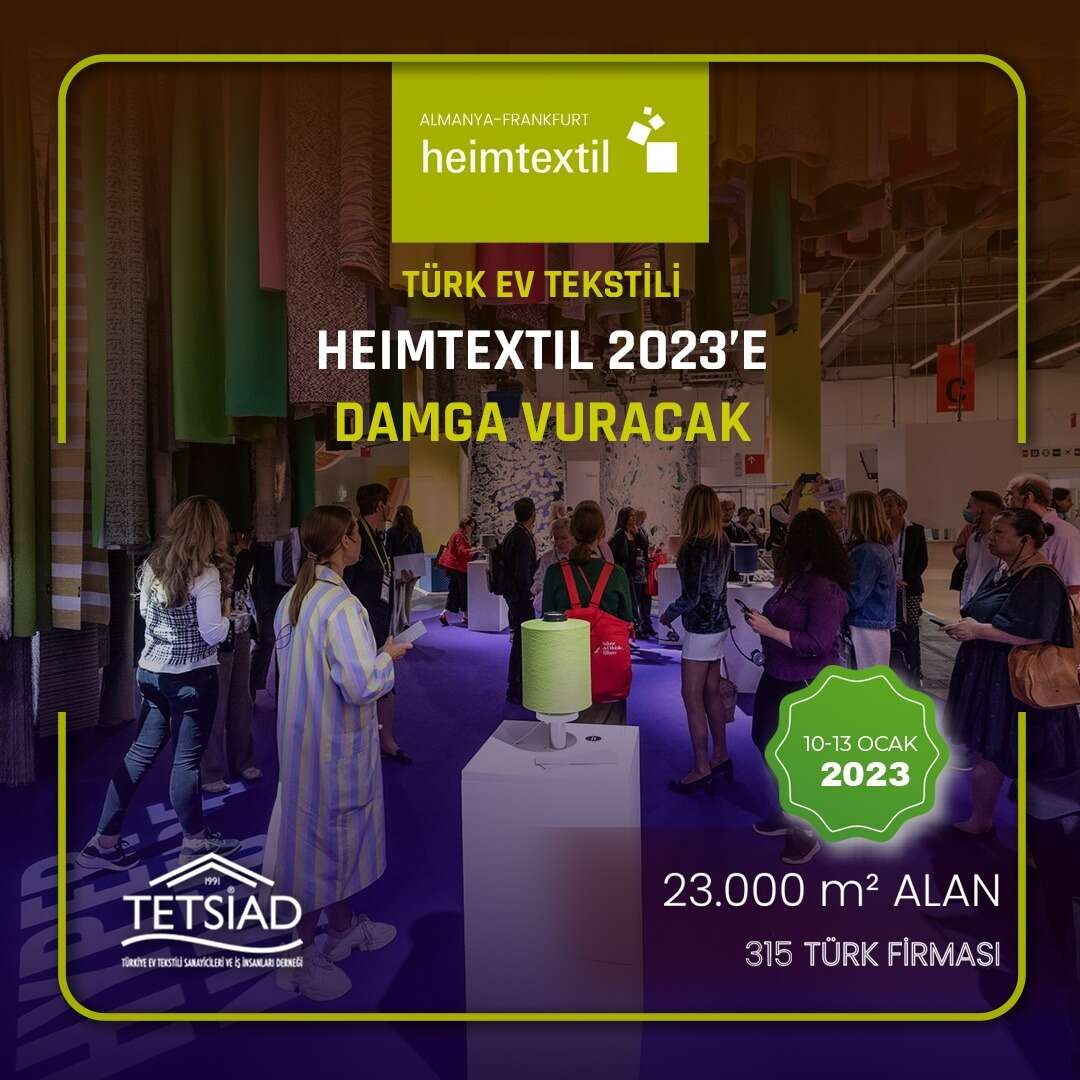 Türk ev tekstili sektörü olarak, Frankfurt’ta 10 – 13 Ocak tarihleri arasında düzenlenecek olan Heimtextil Fuarı’nı, HOMETEX 2023 hedeflerini yakalama açısından önemli bir basamak olarak gördüklerini ifade eden Başkan Hasan Hüseyin Bayram, “Heimtextil Fuarı’nı önemsiyoruz. TETSİAD olarak üyelerimizi bu fuara katılım konusunda teşvik ediyoruz. Vize işlemlerinden otel rezervasyonlarına, ulaşımdan rehber hizmetlerine kadar her konuda danışmanlık hizmeti veriyoruz. Özellikle bürokratik konularda karşılaştıkları sorunları en hızlı şekilde çözüme kavuşturma noktasında yoğun bir çaba harcıyoruz” dedi.