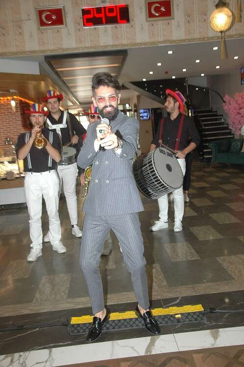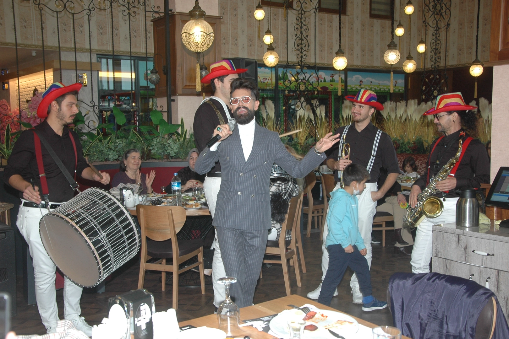 Bursa’nın ünlü solisti Mehmet Çevik kahvaltının yapıldığı salona bando eşliğinde geldi.