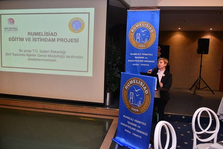 RUMELİSİAD üyelerinden Nihan Deveci, konuklara hali hazırda yürütülen Eğitim ve İstihdam projesi hakkındadetaylı bigi verdi.