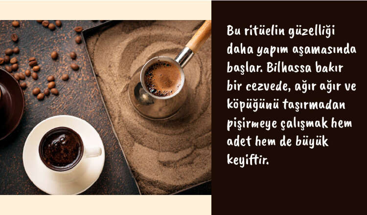 Osmanlı topraklarında pişirme tekniğine incelik sunumuna zarafet eklenmiş ve “Türk kahvesi” olarak namı önce Avrupa’ya sonra dünyaya yayılmıştı. O tarihlerden beri de en güzel geleneklerimizin tanığı ve taşıyıcısı oldu Türk kahvesi…