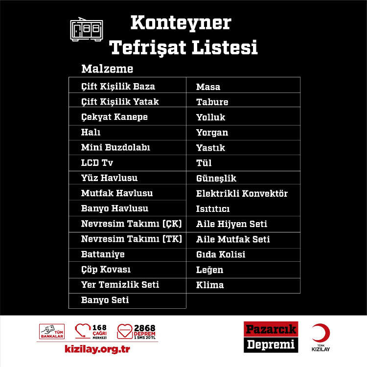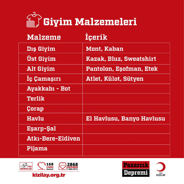 Kızılay'dan ihtiyaç duyulan malzemelerin güncel listesi