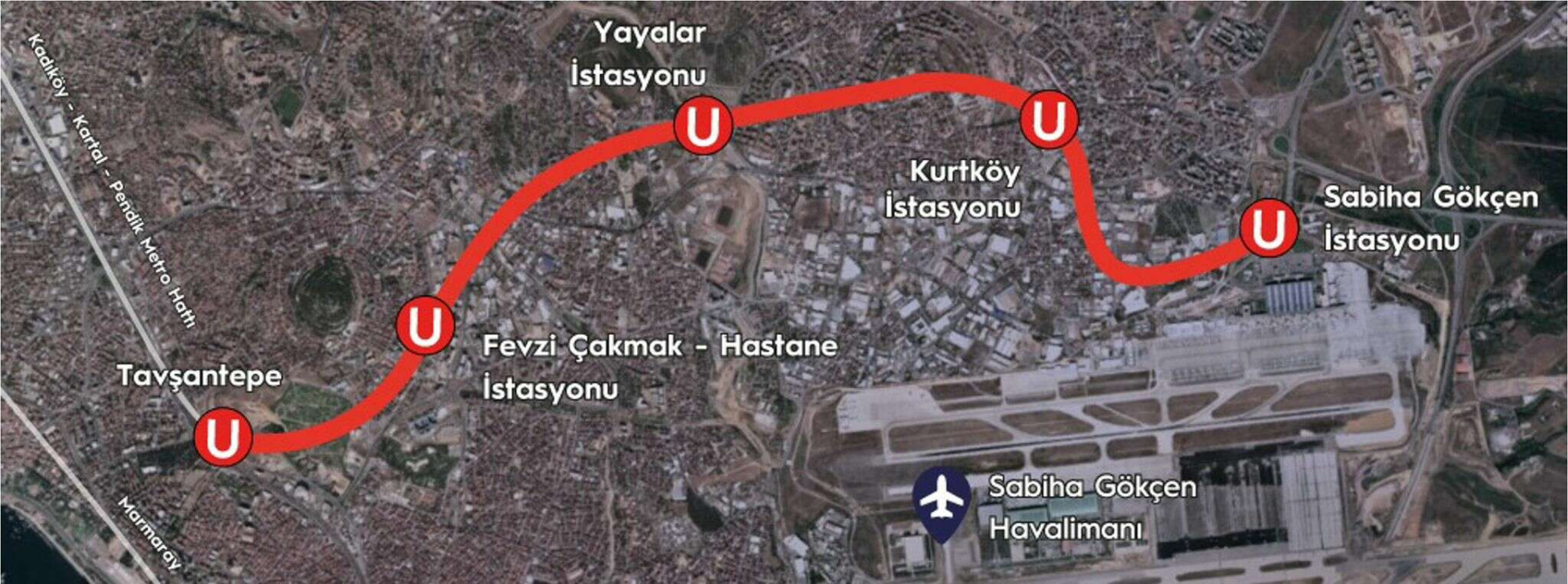Pendik Tavşantepe'den başlayıp Sabiha Gökçen'e kadar uzanan 7.4 km uzunluğundaki Pendik-Sabiha Gökçen Havalimanı hattı, 4 önemli istasyonu ile şehir içi ulaşımın konforunu ve hızını üst seviyeye çıkarıyor. Fevzi Çakmak (Hastane), Yayalar, Kurtköy ve Sabiha Gökçen Havalimanı istasyonları, yolculara hızlı ve güvenli bir ulaşım imkanı sunuyor.