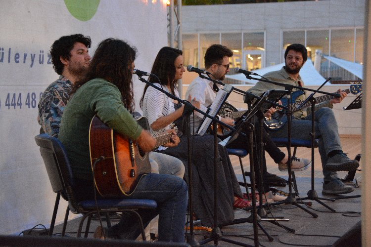 Türkan Saylan Çağdaş Yaşam Merkezinde düzenlenen teras konserlerinin ilkinde Agora Minör Gurubunda Baglamas’ta Serap Çiğdem Şahin ve İlker Şahin, Akustik Gitarda Ratip Ozan Akdeniz, Buzukide Doğukan Yurt, Bas Gitarda Murat Küçükarslan sahne aldı.