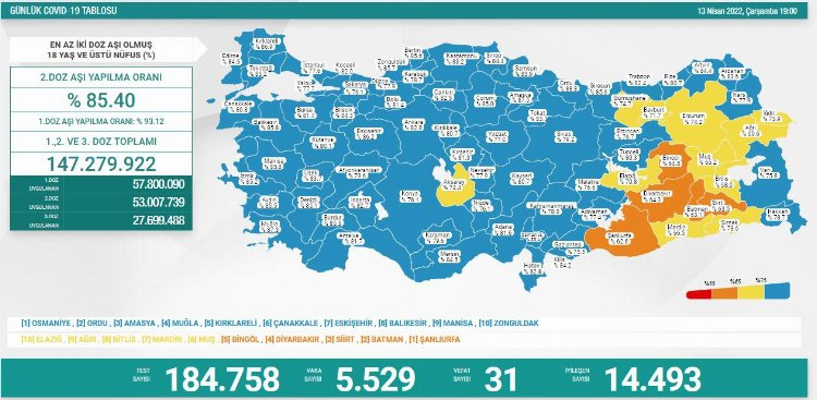 31 kişinin hayatını kaybettiği son 24 saatte 14 bin 493 kişi sağlığına kavuştu.