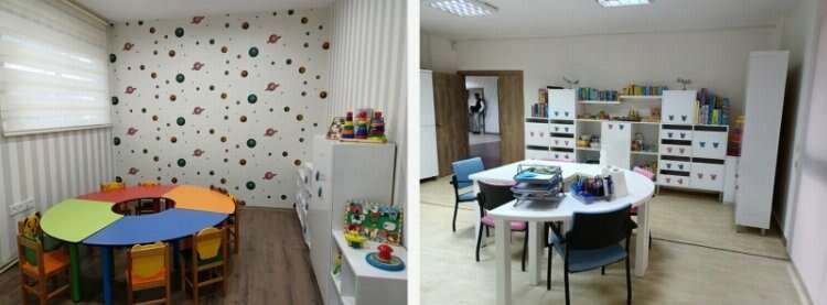 Ayrıca bu merkezlerde içerisinde kitapların, dergilerin, her yaş grubuna uygun oyuncakların bulunduğu çocuk bekleme ve oyun alanı, yetişkin bekleme odası, görüşme odası, bebek bakım odası gibi bölümler yer alıyor.