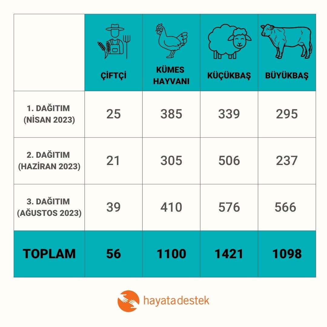 Projeyle ilgili bilgi veren Hayata Destek Derneği Direktörü Sema Genel Karaosmanoğlu, 3 aşamalı yapılan yem dağıtımlarıyla; bin 98 büyükbaş, bin 421 küçükbaş ve bin 100 kümes hayvanının üç aylık besi desteğini güvenceye aldıklarını söyledi. Karaosmanoğlu, "Hayvanlar sadece ekonomik bir varlık değil; aynı zamanda ekosistemlerin vazgeçilmez bir parçasıdır. Bölgedeki hayvancılığı korumak sadece ekonomik faaliyetlerin canlı tutulması ve ekolojik dengenin korunması açısından değil, hayvanlarıyla bir sevgi bağı kurarak, onları ailelerinin bir parçası gibi gören çiftçi ve yetiştiricilerin ruh sağlığı açısından da büyük önem taşıyor. 4 Ekim Dünya Hayvanları Koruma Günü vesilesi ile bu konuya dikkat çekmek istiyor ve destekçilerimizi kış öncesinde bölge halkının hazırlıklarına katkı sunmaya davet ediyoruz" dedi.