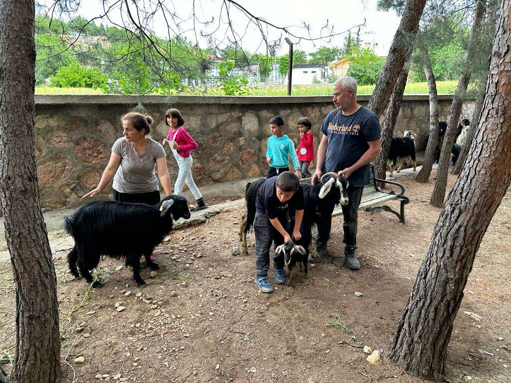 ADIYAMAN (İGFA) - Adıyaman'daki konteyner kentlerde ve şehir merkezindeki afet çalışmalarına katılan gönüllüler daha sonra Adıyaman merkeze bağlı Yaylakonak Beldesi'nde hayvancılıkla geçimini sağlayan ve depremde yakınlarını kaybeden 33 aileye 132 adet keçi dağıttı.