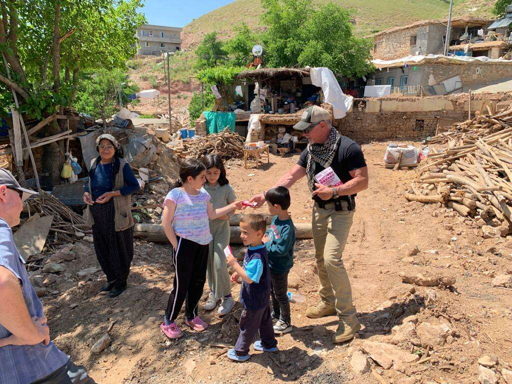 Depremde 105 kişinin hayatını kaybettiği beldede yaşayanlara keçi dağıtan Hintli, Amerikalı ve Türk gönüllüler daha sonra beldedeki çocuklara çeşitli hediyeler dağıtarak onlarla sohbet etmeyi de ihmal etmedi.