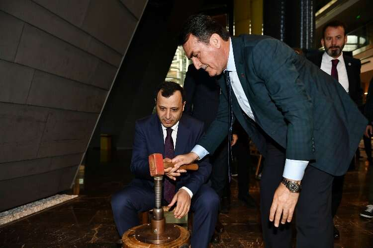 Heyet son olarak müzenin hediyelik eşya bölümünde bulunan hatıra sikke basma setine oturarak Osmanlı’nın ilk akçesinden bastı.
