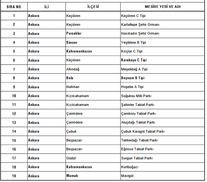 Ankara'da kontrollü giriş yapılabilecek alanların listesi şöyle: