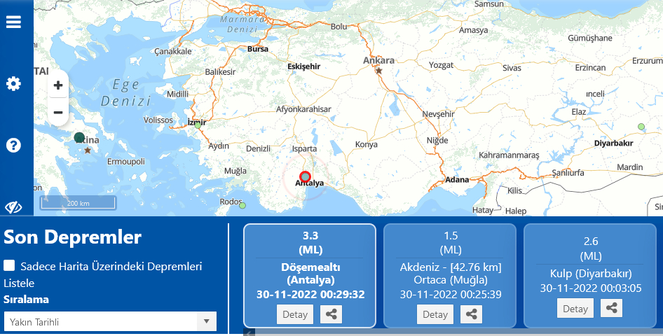 Antalya Döşemealtı'nda 3,3 büyüklüğünde deprem!