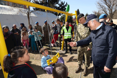 Bakan Akar beraberindeki Genelkurmay Başkanı Orgeneral Yaşar Güler ile Kahramanmaraş'taki incelemeleri kapsamında Fuar Alanı ve Atatürk Parkı’nda çocuklar için kurulan oyun çadır alanında incelemelerde bulundu.