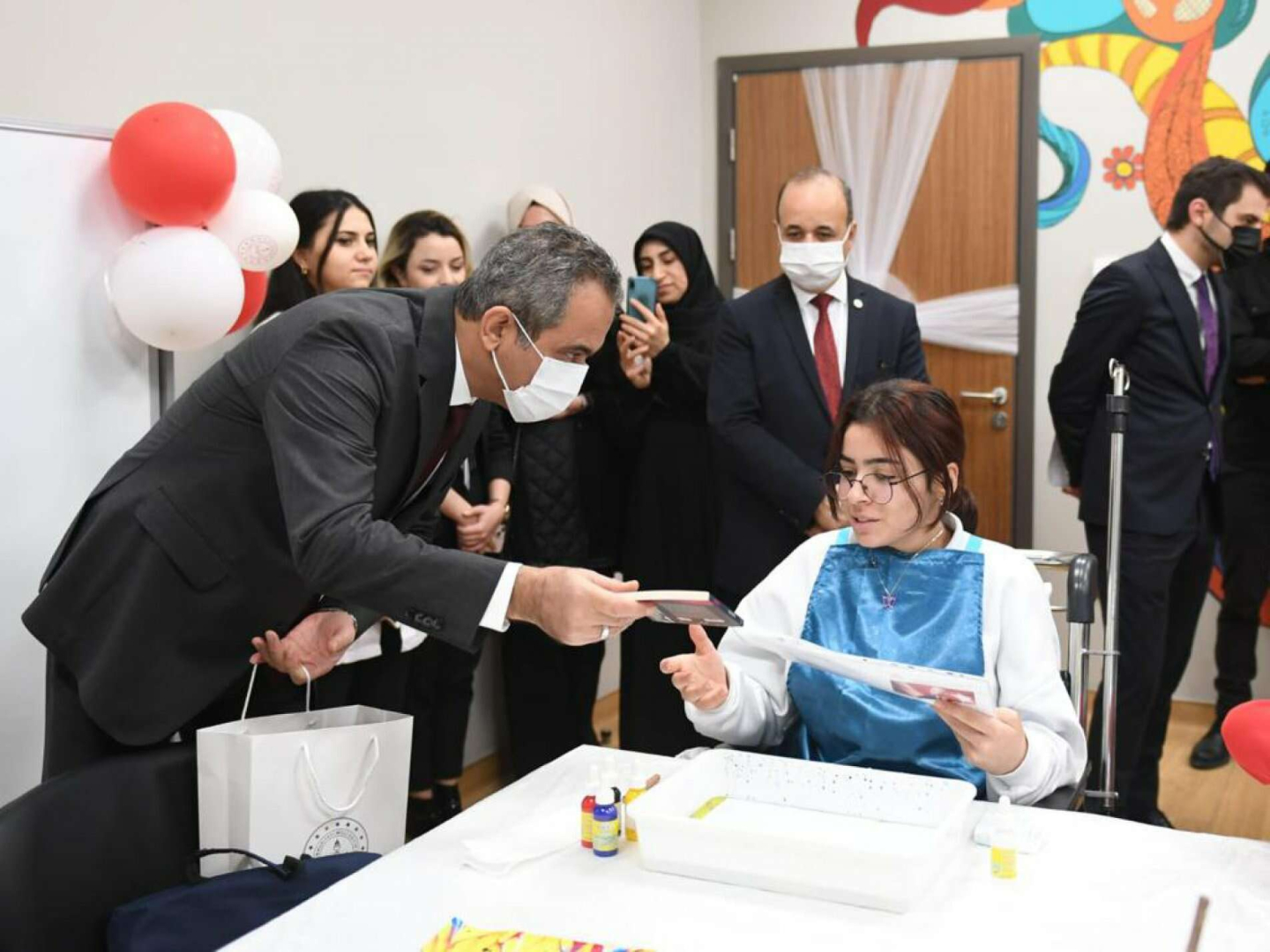Daha sonra çocuklarla tek tek sohbet eden ve isteklerini soran Bakan Özer, öğrencilere çeşitli hediyeler verdi.