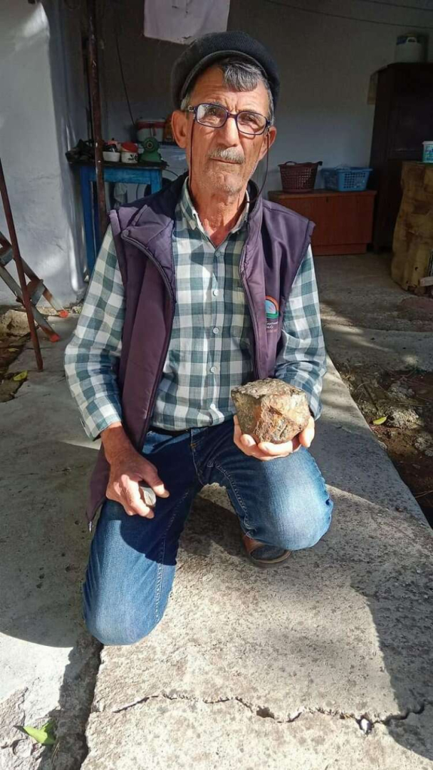 İzmir'de Bergama Göbekli mahallesinde ikamet eden arı üreticisi Osman Memeci, Kozak Aşağıcuma Mahallesi'nde ormanlık alandaki arılarına bakım yaparken meteor taşı bulduğunu iddia etti.