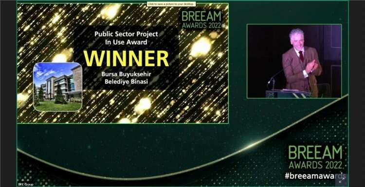 Geçtiğimiz yıl tüm dünyada geçerli olan ve Türkiye’de sadece 4 kamu binasının sahip olduğu Yeşil Bina Sertifikası (BREEAM In-Use Sertifikası) alan Bursa Büyükşehir Belediyesi’nin yeni hizmet binası, şimdi de BREEAM Mükemmellik Ödülü’nün sahibi oldu.