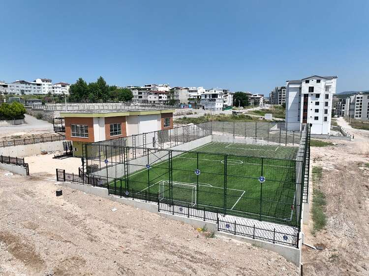 BURSA (İGFA) - Kültür merkezleri, millet kıraathaneleri, spor tesisleri, yeni kütüphaneler, sosyal, kültürel, sanatsal ve sportif etkinliklerle özellikle genç nüfusa geniş bir yelpazede hizmetler sunan Bursa Büyükşehir Belediyesi, gençler için ayrıcalıklı bir tesisi de Yenibağlar Mahallesi’ne kazandırdı. İnşaatı tamamlanma aşamasına gelen Yenibağlar Gençlik ve Spor Merkezi projesi bünyesinde 1400 metrekare alanlı halı saha, 400 metrekare park, yürüyüş parkuru ve toplamda 200 metrekare iki katlı idari bina inşa edildi.