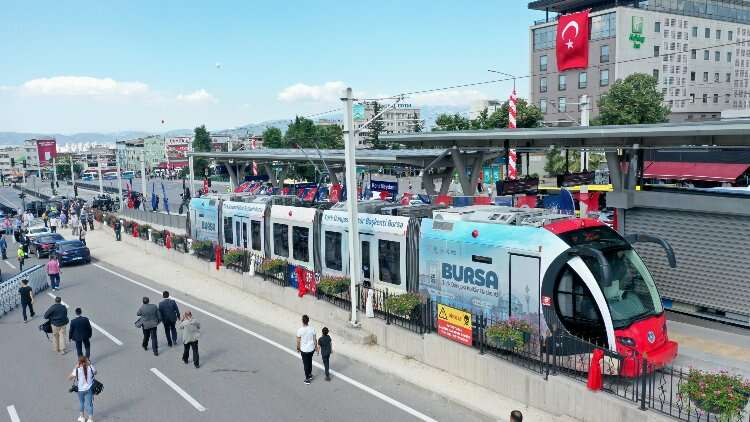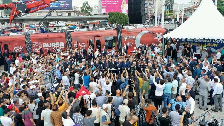 BURSA (İGFA) - Bursa Büyükşehir Belediyesi’nin raylı sistemi kentin kuzeyiyle buluşturduğu ‘Kent Meydanı-Terminal tramvay hattı, düzenlenen törenle hizmete girdi.