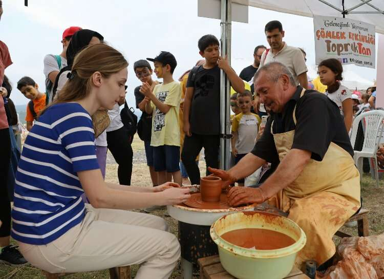 Tarihi bölgede hazırlanan stantları gezen katılımcılar, mozaik, sikke basım, restorasyon, Hitit çivi yazısı atölyesi, kilden çömlek yapımı, fosil kolye yapımı, yontma taştan alet yapımı, sepet yapımı, demir dövme, ok atma, minyatür kerpiç ev uygulaması gibi birçok deneyimi keyifle yaşadı. Aileleriyle festivale katılan çocuklar ise tekstil baskı, çömlekçi çarkı, çatlak yumurta ile kâğıt atölyesi, boyama, hazine avı, ilkel müzik aleti yapımı gibi faaliyetlerle unutamayacakları bir gün geçirdi. Uzman personeller eşliğinde arkeoloji kazı yapan çocuklar, toprak altından buldukları çömlekleri büyük bir mutlulukla çıkardı. Alan içerisinde hazırlanan drama atölyeleriyle arkeoloji tutkunları zamanda yolculuk yaptı.