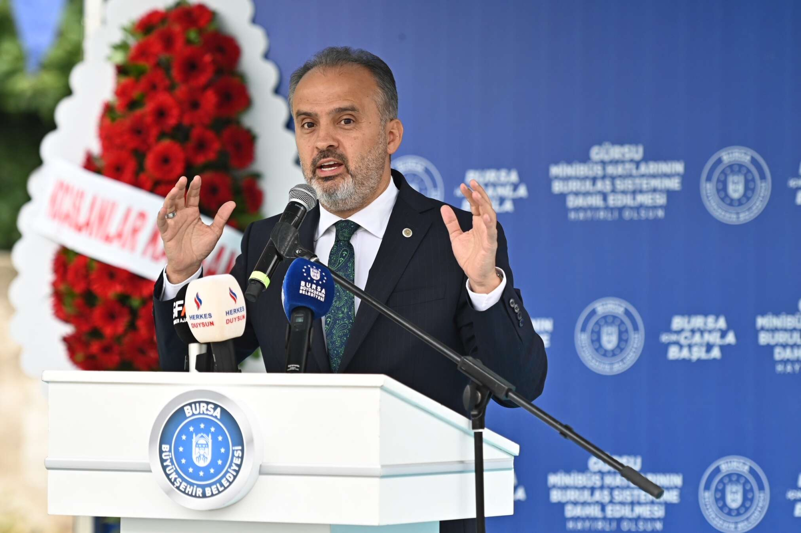 Bursa Büyükşehir Belediye Başkanı Alinur Aktaş, her yıl nüfusun 40 bin-50 bin arttığı Bursa’da sorunsuz ulaşım gayesiyle önemli çalışmaları hayata geçirdiklerini söyledi. Ulaşım konusunda çözüm odaklı olarak tüm süreçleri takip ettiklerini ifade eden Başkan Aktaş, “Bursa’da herkesin dilinde ulaşım var. Günlük hayatımızda yürüdüğümüz yolu, kullandığımız toplu taşıma aracını, otobüs duraklarını, metro istasyonlarını, özel araçları, kavşakları, yolları, otoparkları ve daha bir çok şeyi ulaşım başlığı altına koyabiliriz. Bundan yola çıkarak gerçekten gece gündüz çalışıyoruz. Çözüm odaklı olarak da süreçleri takip ediyoruz. Bu şehirde ulaşım konusunun gündemden çıkabilmesi için radikal adımlara ihtiyaç var. Şehirdeki ulaşımın sorun olmaktan çıkması için akıllı kavşaklar, raylı sistem yatırımları, yeni yollar, köprü ve kavşaklar gibi fiziki yatırımlara da ağırlık veriyoruz. Ben göreve geldiğimde BURULAŞ’ın araç sayısı 1087’ydi. BURULAŞ’a bağlı şimdiye dek 2489 araçla hizmet veriyorduk, Gürsu ile bu sayı 2558’e yükseldi. Tek gayemiz vatandaşın huzurunu sağlamak; sabah vatandaşımızı işine sorunsuz, akşam da evine güvenle ulaştırmak. Bu projenin hayata geçirilmesinde katkı sunan herkese teşekkür ediyorum. Kazasız, belasız seyahatler diliyorum, Gürsu halkımıza hayırlı uğurlu olsun” dedi.