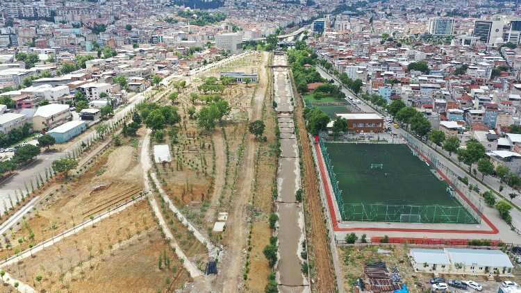Yıldırım ile Osmangazi ilçelerinin sınırını belirleyen Gökdere’nin her iki yakasını kaplayan ve yaklaşık 200 bin metrekare alan üzerinde hayata geçirilen projenin 2 bin 800 metrekaresinde sosyal donatı, kalan alanında ise rekreasyon bölümleri yer alacak.