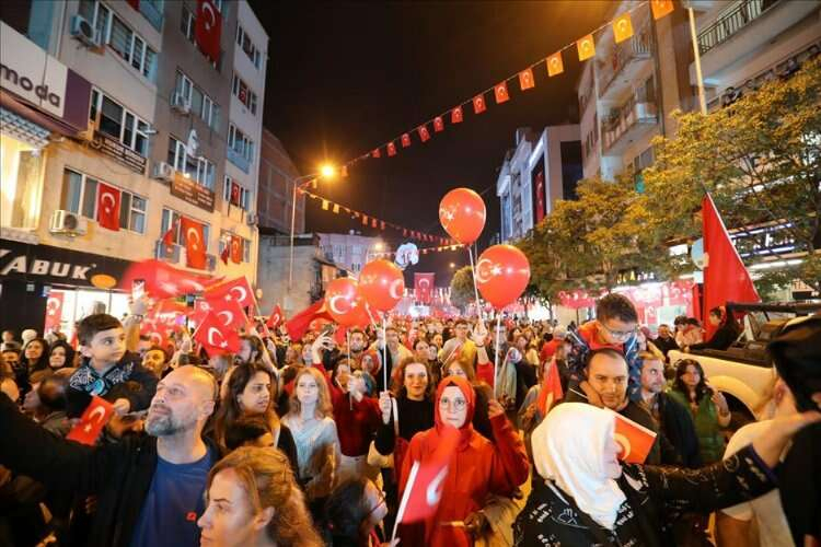 Büyük coşkunun yaşandığı cumhuriyet yürüyüşü sırasında Atatürk Bulvarı üzerindeki vatandaşlar da katılarak devam etti. Yol boyunca kaldırımlarda, evlerin cam ve balkonlarında vatandaşlar da alkışlarıyla destek verdi. Heykel önünde son bulan yürüyüşün ardından Belediye Başkanı Alper Taban ile Kaymakam Eren Arslan kısa birer selamlama konuşması gerçekleştirdi. Birlik beraberlik mesajlarının verildiği ve cumhuriyete vurgu yapılan konuşmalar sonrası saygı duruşunda bulunulup İstiklal Marşı hep bir ağızdan okunarak program sona erdi.