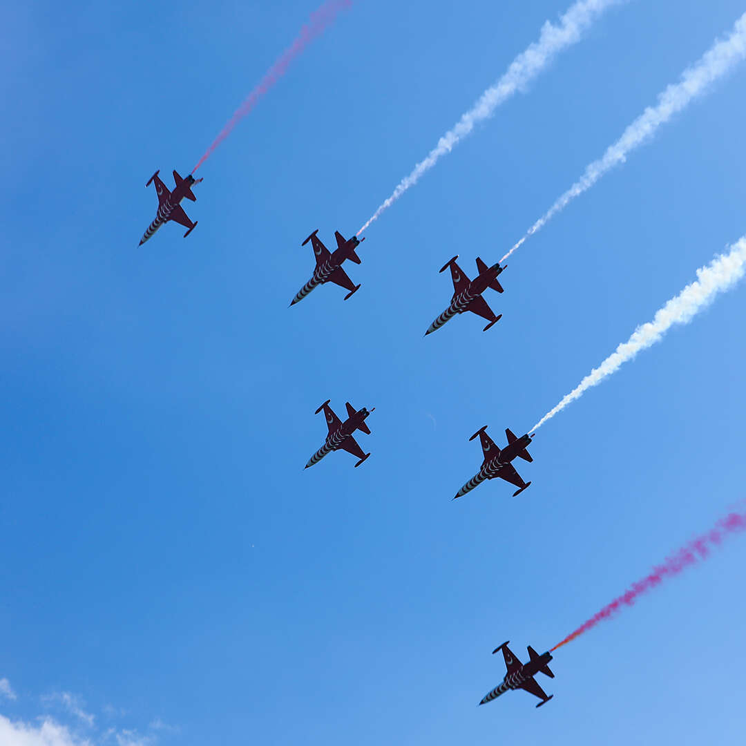 Türk Yıldızları gökyüzünden 4. Dünya Göçebe Oyunları misafirlerini selamladı.
