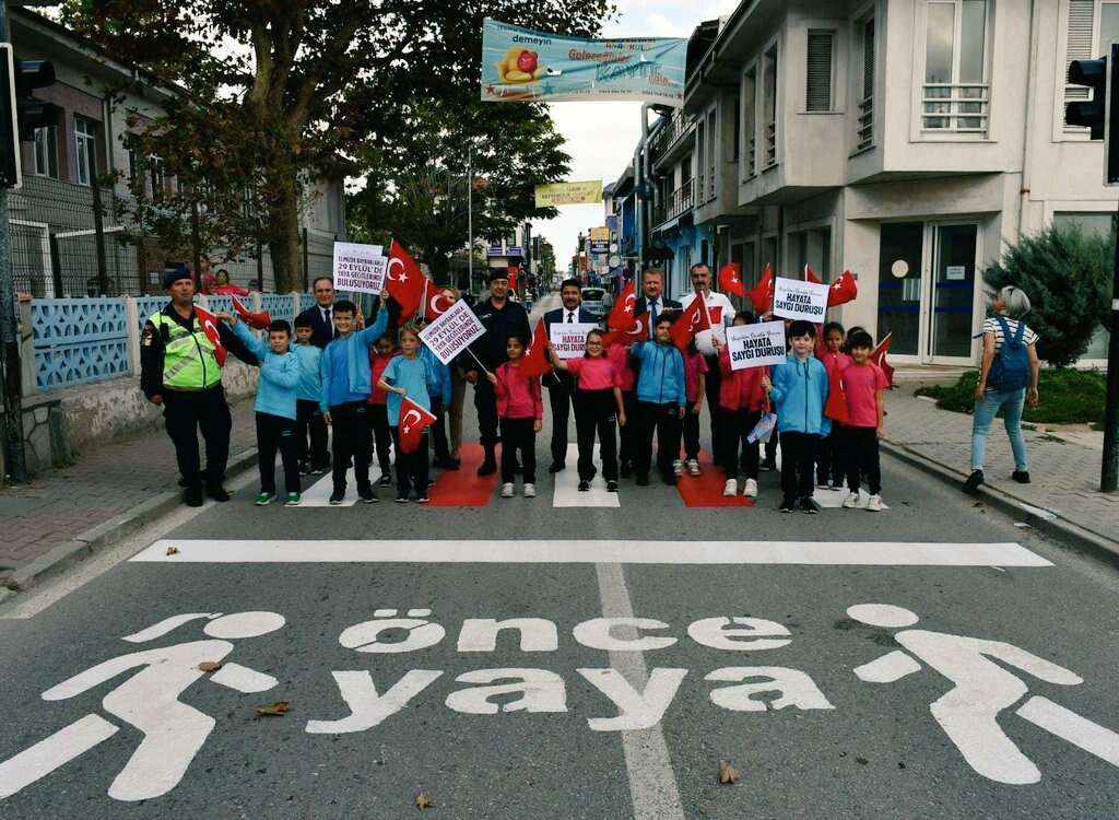 Trafikte yaya önceliğine dikkat çekmek ve sürücü duyarlılığını artırmak amacıyla yurt genelinde eş zamanlı düzenlenen “Yayalara Öncelik Duruşu/ Hayata Saygı Duruşu” sloganlı kampanya Bursa'nın Mudanya ilçesinde de gerçekleştirildi.