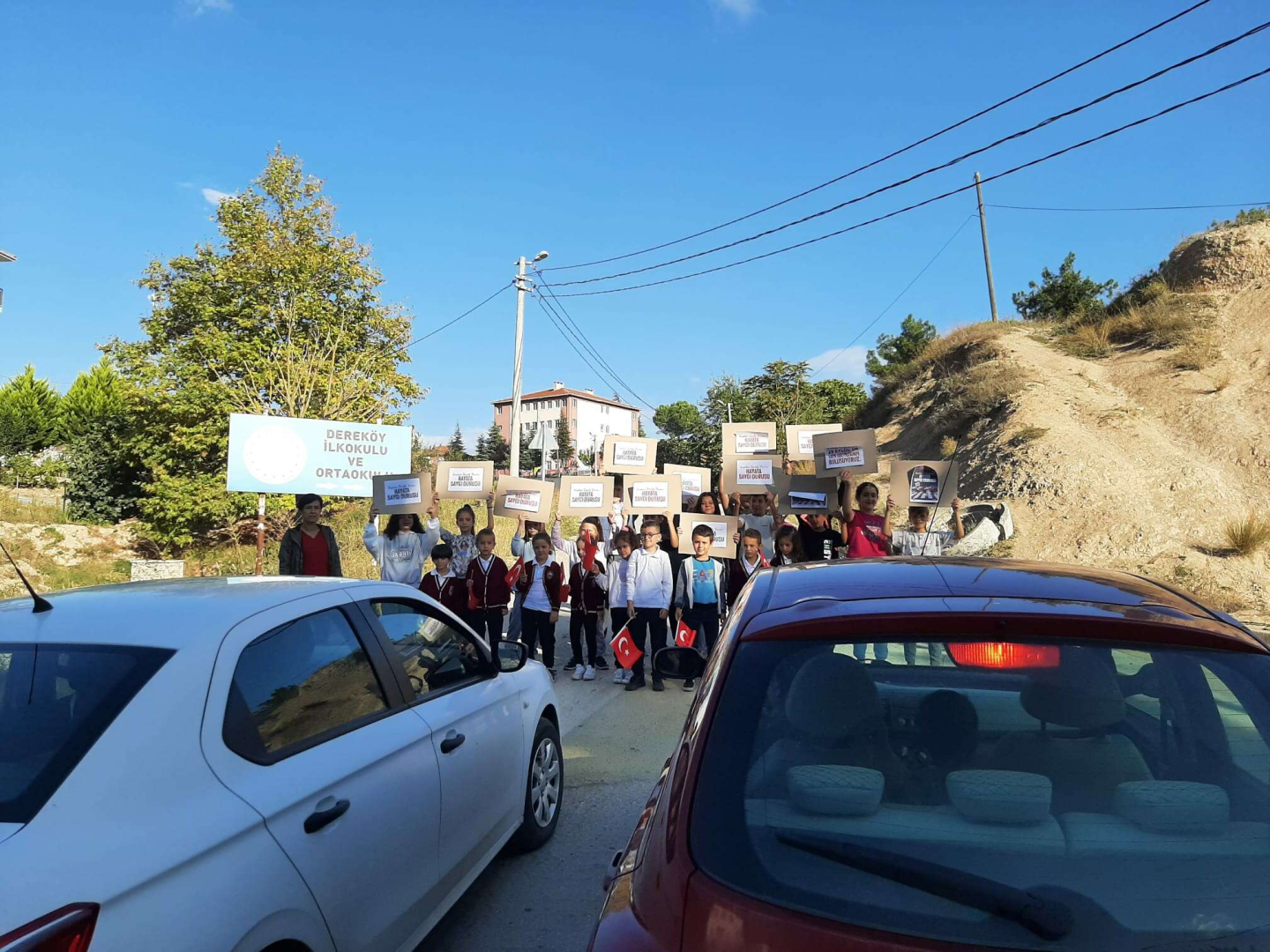 BURSA (İGFA) - Mudanya'daki okulların çıkışlarındaki yaya geçitlerinde düzenlenen farkındalık etkinliklerinde öğrenciler, ellerinde Türk bayrakları ile trafikte yaya önceliğine dikkati çekti.