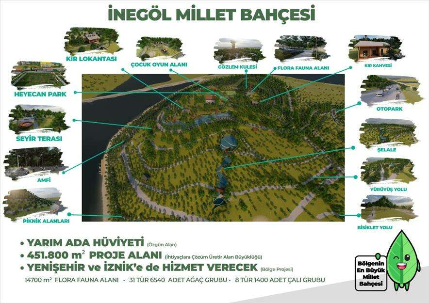 Söz konusu alanın Bursa’da tek parça halinde en büyük Millet Bahçesi hüviyetini kazanacağının altını çizen Başkan Taban, "Konseptiyle de bu özelliği kazanmış olacak. Ben bunu sadece İnegöl’ün projesi olarak görmüyorum. Ulaşım da artık kolay. Çevre şehirlerin de istifade edebileceği güzel bir mekan ortaya çıkmış olacak” dedi.
