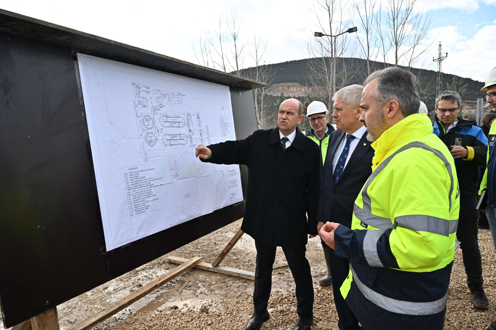 Bursa Büyükşehir Belediye Başkanı Alinur Aktaş, beraberindeki Orhaneli Belediye Başkanı Ali Aykurt ile birlikte inşaatın devam ettiği arıtma tesisinde incelemelerde bulundu.