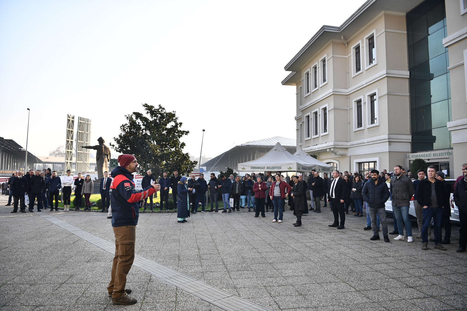 Ekipler tarafından içeride kalan personelin olup olmadığı kontrol edildi. Senaryo gereği bina içerisinde mahsur kalan bir personel olduğunun tespit edilmesinin ardından acil yardım ekibi, halatlar ile binanın ikinci katına tırmanarak, personelin tahliyesini gerçekleştirdi. Tatbikat sonrası belediye personeline deprem öncesi ve sonrasından yapılması gerekenler hakkında bilgi verildi. Tatbikat aksaksız bir şekilde tamamlanırken, Osmangazi Belediyesi personeli afet ve acil durum karşısında yapılacaklar konusunda tecrübe kazandı.