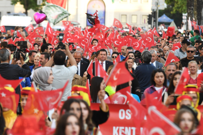 BURSA (İGFA) - Bursa Fomara Meydanı’ndan başlayan yürüyüşe katılan coşkulu kalabalık, söylenen marşlar eşliğinde ellerindeki Türk bayraklarını sallayarak Osmangazi Meydanı’na kadar ilerledi.