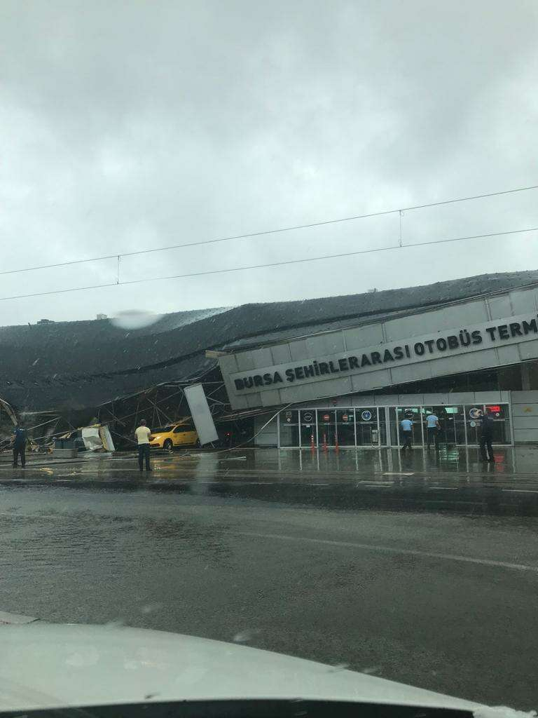 Bursa'nın bazı bölgelerinde yaşanan fırtına ve kuvvetli yağış bir çok hasara neden oldu. Şehirlerarası Otobüs Terminali çöktü, otobüs ve yolcular olaay yerinde rehin kaldı. 15 gün önce hayatın olumsuz etkileyen sağanak yağışa teslim olan Mudanya, saat 15.00 sıralarında yine kuvvetli sağanaktan olumsuz etkilendi. Sel taşkınlarının yaşandığı ilçede dereler taştı, sitenin istinat duvarı çöktü, yollar çamura büründü.