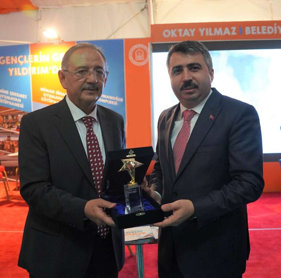 Geçtiğimiz yıl ‘Fiziki Belediyecilik Yatırımları’ dalında Mümine Şeremet Uyumayan Kütüphanesi, Naim Süleymanoğlu Spor Kompleksi ve Yıldırım Sosyal İnovasyon ve Girişimcilik Merkezi projeleriyle ödül alan Yıldırım Belediyesi, bu yıl Mimar Sinan Uyumayan Kütüphanesi yatırımıyla yarışmaya katılarak yine ‘Fiziki Belediyecilik Yatırımları’ dalında ödül alırken ilçede gerçekleştirilen vizyon kültür, sanat ve gençlik çalışmalarından dolayı ‘Genç Belediye Özel Ödülü’ne layık görüldü. Ödülü AK Parti Genel Başkan Yardımcısı ve Yerel Yönetimler Başkanı Mehmet Özhaseki’nin elinden alan Yıldırım Belediye Başkanı Oktay Yılmaz, bu ödülü Yıldırımlı gençler adına aldığını ifade ederek Cumhurbaşkanı Recep Tayyip Erdoğan'ın desteği ile Yıldırım’da gençlik yatırımlarını artırarak devam ettireceklerini söyledi. AK Parti Genel Başkan Yardımcısı ve Yerel Yönetimler Başkanı Mehmet Özhaseki, Yılmaz’ın başarılarının devamını diledi ve standı ziyaret eden vatandaşlara kestane şekeri ikramında bulundu.