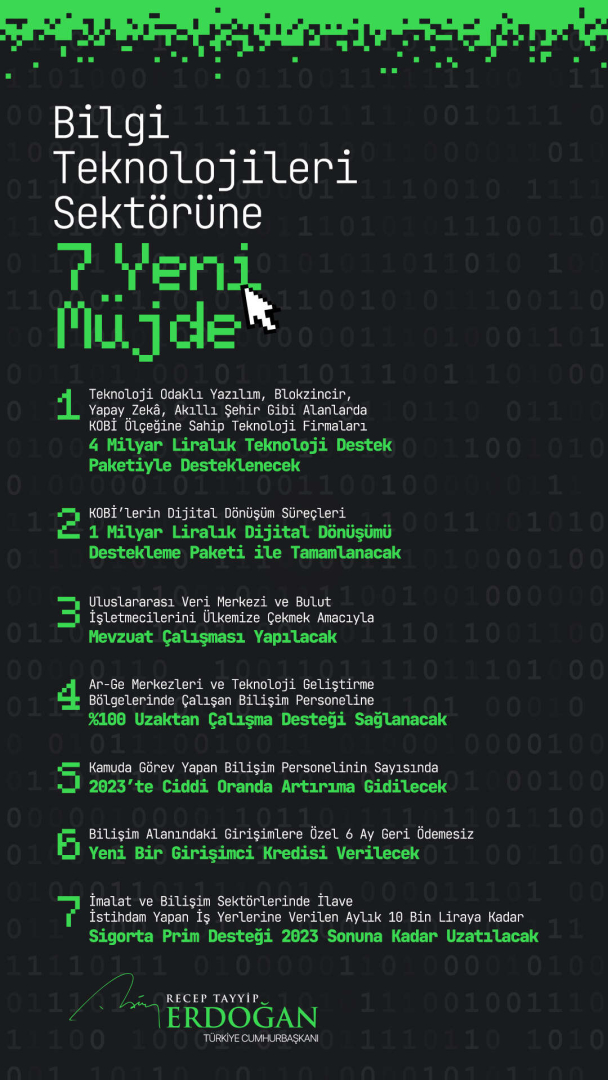Cumhurbaşkanı Erdoğan'dan 7 maddelik teknoloji destek paketi