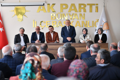 KAYSERİ (İGFA) - Kayseri Büyükşehir Belediye Başkanı Dr. Memduh Büyükkılıç, AK Parti İl Başkanı Hüseyin Okandan, İl Kadın Kolları Başkanı Meral Koşar ile birlikte AK Parti Bünyan İlçe Başkanlığı’nı ziyaret ederek İlçe Başkanı Yıldıray Hakkı Koç ve teşkilatla bir araya geldi.