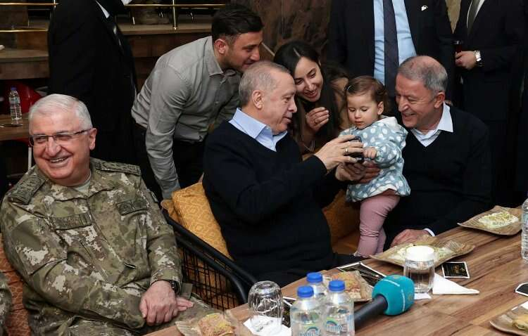 Beraberindeki Millî Savunma Bakanı Hulusi Akar ve TSK Komuta Kademesi ile bir süre pastanede oturarak gençlerle de sohbet eden Cumhurbaşkanı Erdoğan, pastanenin çıkışında vatandaşların yoğun ilgisiyle karşılaştı.
