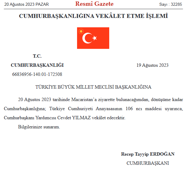 Öte yandan Cumhurbaşkanı Erdoğan'ın günübirlik ziyareti esnasında Cumhurbşakanlığı'na Cumhurbaşkanı Yardımcısı Cevdet Yılmaz vekalet edecek.