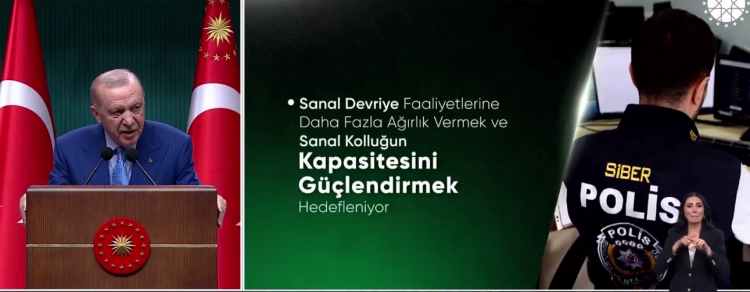 Bu noktada ‘siber devriye faaliyetlerine’ daha fazla ağırlık vermeyi, siber birimlerimizin kapasitesini güçlendirmeyi hedeflediklerini belirten Cumhurbaşkanı Erdoğan, "İnternetin karanlık dehlizlerinde görünür-görünmez varlığımızı yapay zekâdan da istifade ederek daha da güçlendireceğiz. Okul-kolluk iş birliğinin artırılması, yeni çalışma modellerinin geliştirilmesi, yine bu süreçte atacağımız adımlardan biri olacaktır." dedi.