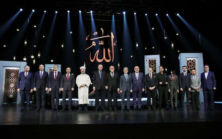 Cumhurbaşkanı Erdoğan, imam hatip okullarında ve diğer okullardaki Kur'an derslerinde, camilerde açılan Kur'an kurslarında, çocukluktan erişkinliğe kadar her yaş grubundan dileyen herkese Kur'an-ı Kerim'i öğretecek altyapıya sahip olunduğunu sözlerine ekledi.