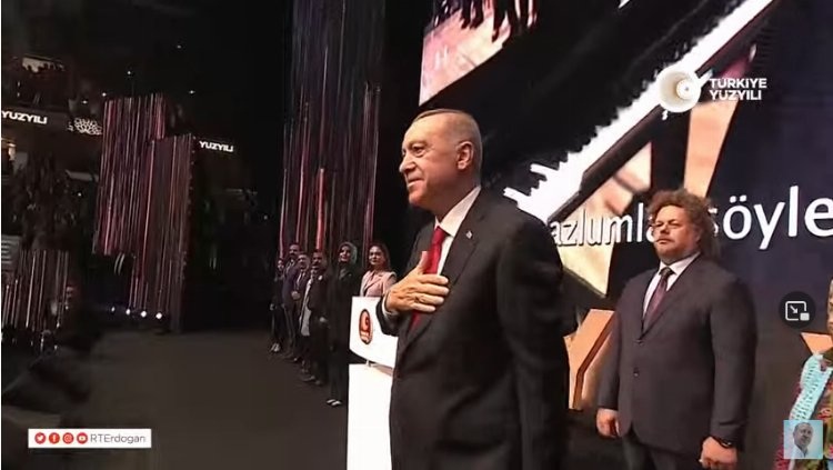 Ankara Spor Salonu'nda görsel şölen eşliğinde yapılan sunumda vatandaşlara hitap eden Cumhurbaşkanı Erdoğan, Cumhuriyet Bayramı'nın bir gün öncesinde Türkiye Yüzyılı'nın kutlandığını ifade ederek, Türkiye Yüzyılı'nda nelerin bulunduğuna ilişkin vizyon belgesini detaylı bir şekilde açıkladı.