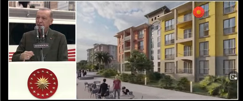 Hatay'da 3 bin 122 konutla birlikte 22 bin 467 konutun inşası fiilen başlandığını belirten Erdoğan, 319 bin Konut, toplamda 650 bin konut yaparak şehir merkezlerini yerinde dönüştürerek insanlarımıza sağlam güvenli huzurlu yuva ve iş yerleri kazandıracaklarını söyledi.